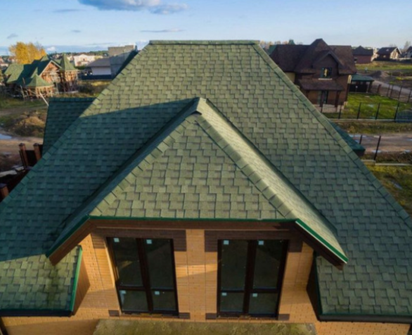 Применяется в качестве основного кровельного покрытия при угле наклона ската от 12° до отрицательных углов. Рисунок готовой кровли хаотичный.
