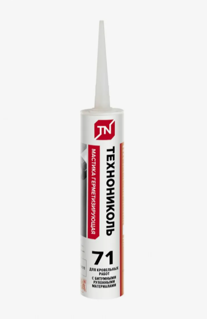 Герметизирующая мастика «ТехноНИКОЛЬ» №71 фасована в картриджи по 310 мл. Это полимерно-битумная мастика с высоким сухим остатком, производится на ароматическом растворителе.